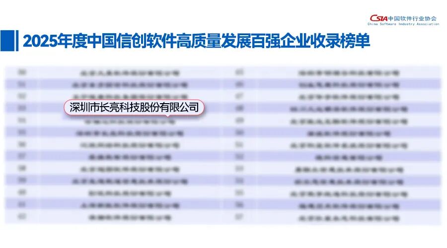 近日,在中國軟件行業協會、華東師范大學聯合主辦的2025中國軟件高質量發展大會上,長亮科技憑借突出的技術創新與行業貢獻,一舉斬獲“中國軟件誠信示范單位(2025-2028年)”“2025年度中國軟件高質量發展前百家企業”兩項重磅榮譽。此外,公司亦入選中國軟件行業協會發布的“2025年度中國信創軟件高質量發展百強企業收錄榜單”,充分彰顯了其在金融科技領域的強大實力與標桿姿態。