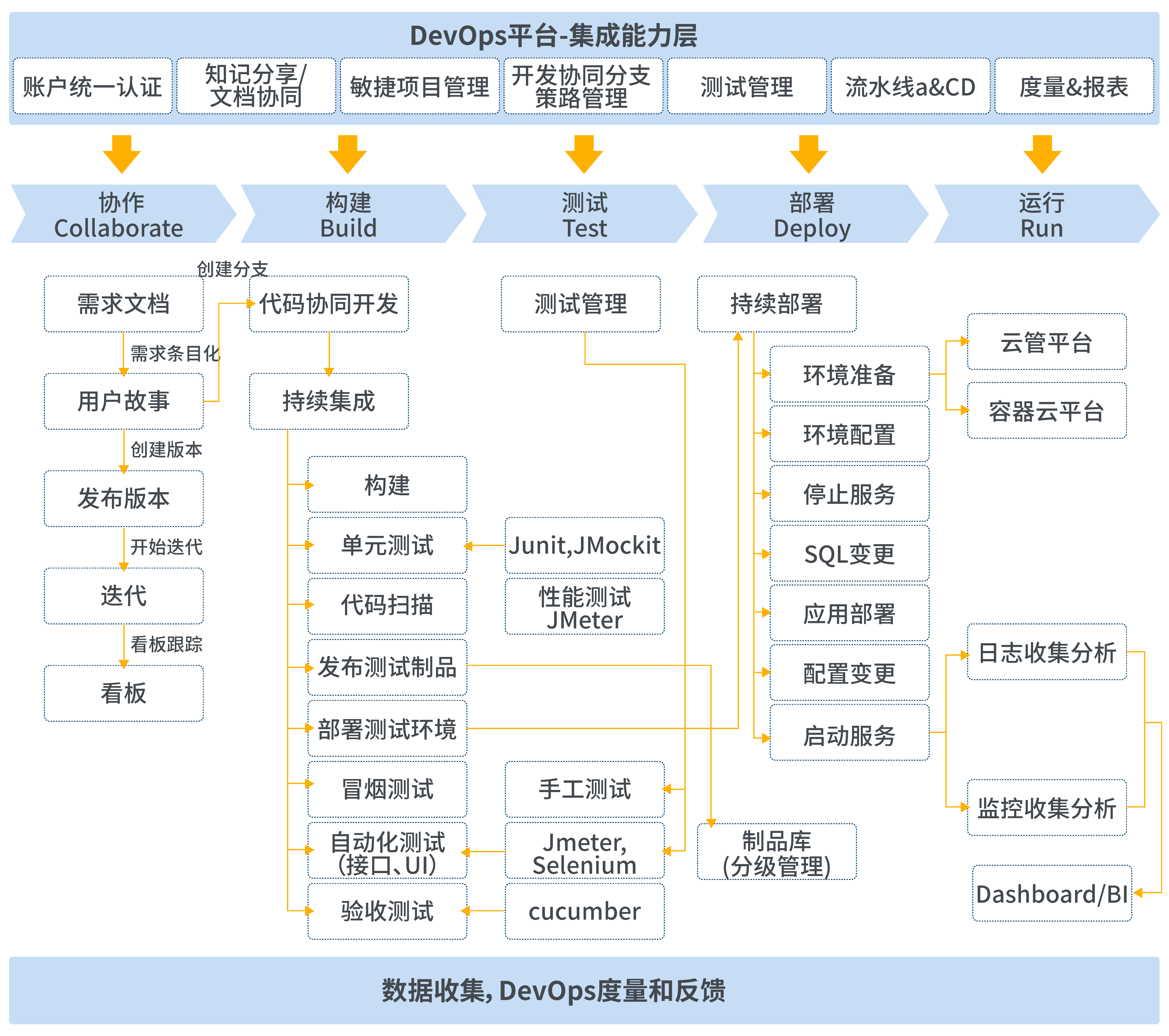 組件集成能力:提供組件間深度集成能力,如項(xiàng)目管理工具與代碼版本管理工具在用戶故事關(guān)聯(lián)方面的集成能力、代碼版本管理工具與持續(xù)集成工具在分支代碼變動(dòng)觸發(fā)持續(xù)集成流水線能力、組件關(guān)鍵事件收集、分析和度量能力