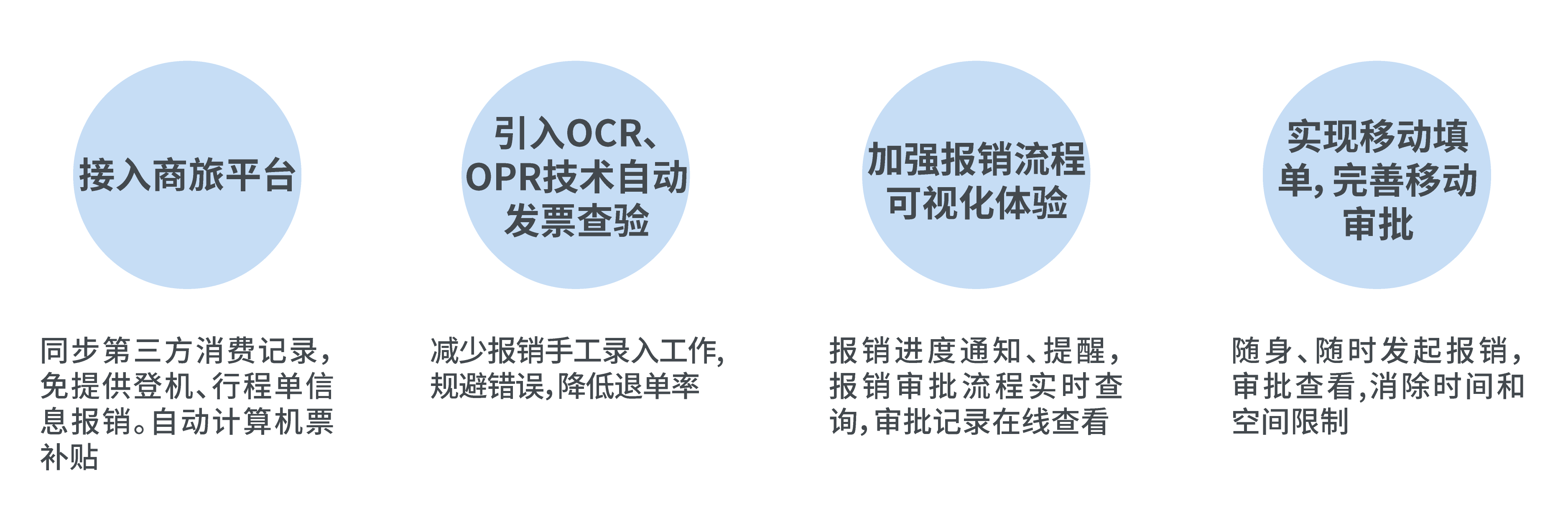 ?報(bào)銷人員:移動(dòng)、自助的報(bào)銷需求得到滿足,更好地理解報(bào)銷標(biāo)準(zhǔn)和財(cái)務(wù)政策,及時(shí)收到報(bào)銷款項(xiàng);