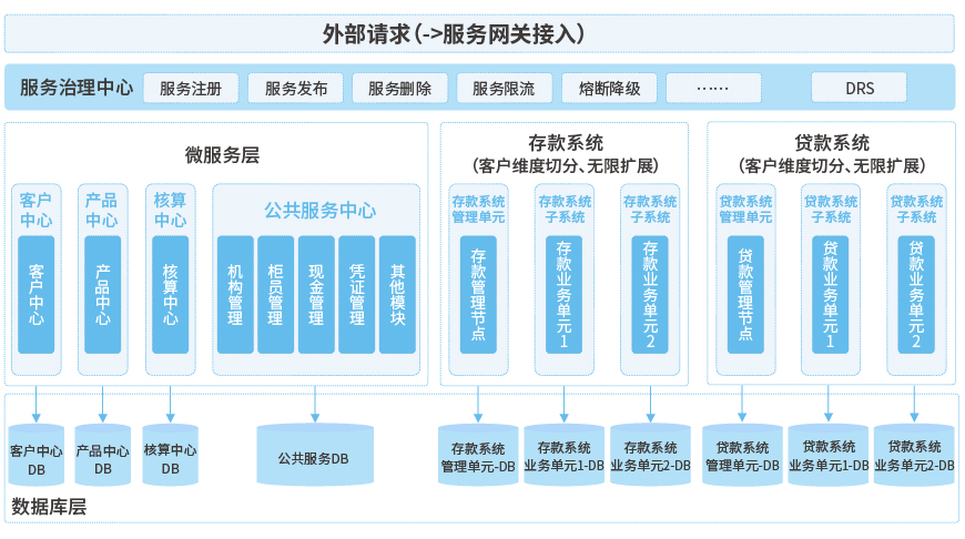 長(zhǎng)亮科技結(jié)合多年在銀行核心領(lǐng)域的積累及業(yè)內(nèi)先進(jìn)技術(shù)經(jīng)驗(yàn),基于SpringBoot + SpringCloud體系增強(qiáng)的企業(yè)級(jí)微服務(wù)框架和企業(yè)級(jí)應(yīng)用開發(fā)平臺(tái),成功落地了全新的“微服務(wù)+單元化”銀行核心系統(tǒng)分布式架構(gòu),有效提高了系統(tǒng)高可用性與擴(kuò)展性,成為銀行降本增效、掌控風(fēng)險(xiǎn)的利器。