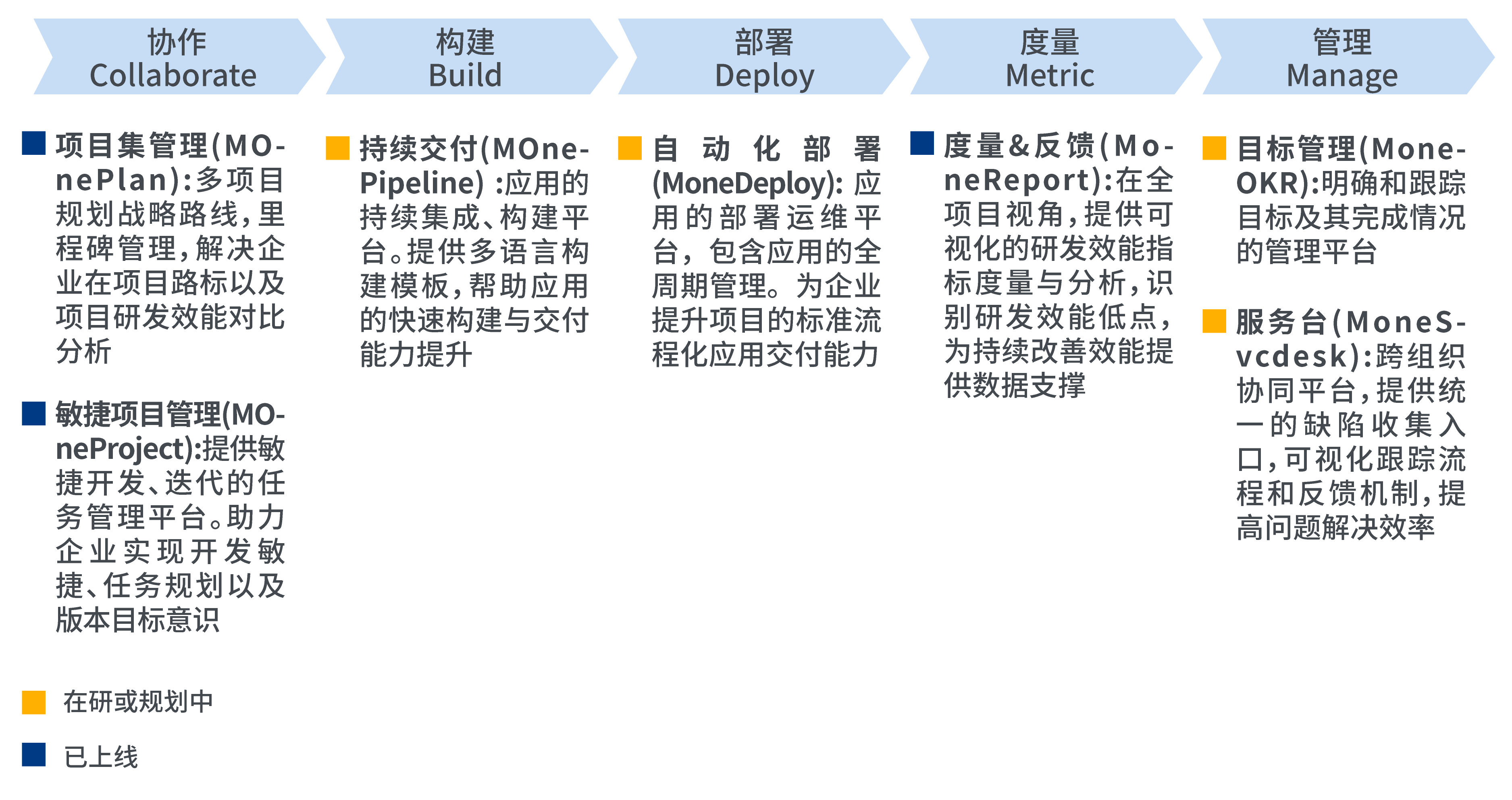 ◆ MOne覆蓋產(chǎn)品研發(fā)全生命周期,從目標規(guī)劃、需求管理、迭代跟蹤、代碼管理、構(gòu)建管理、測試管理、部署發(fā)布全過程,實現(xiàn)研發(fā)管理一站式交付;