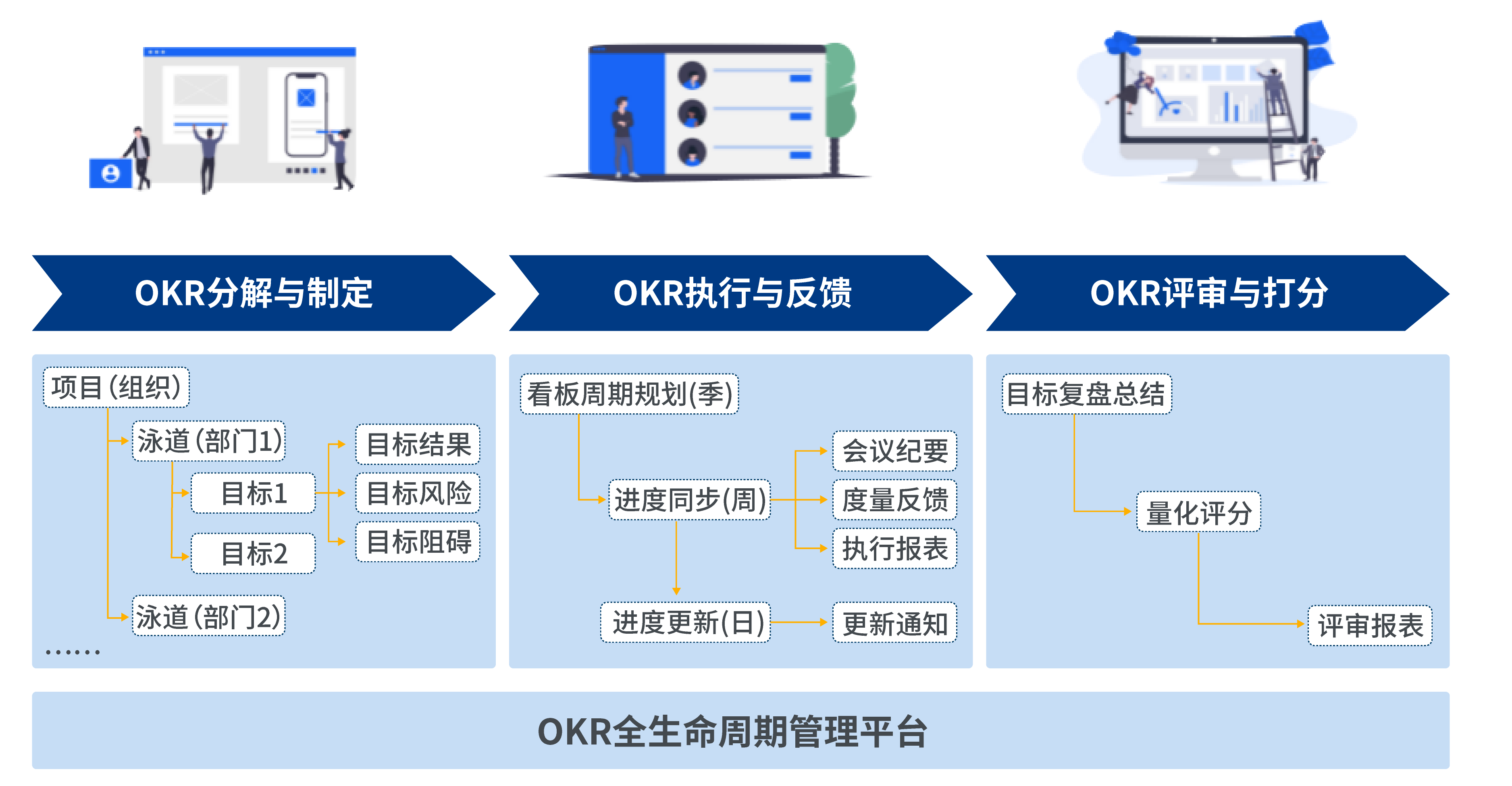 ?在功能方面,MOne OKR 規(guī)劃季度(月度)短期目標,通過集成 Jira 實現(xiàn)自動跟蹤和度量目標完成進度,結(jié)合 Scrum 敏捷開發(fā)方法,通過迭代沖刺的方式持續(xù)交付,從用戶需求到需求實現(xiàn)一個個閉環(huán)的軟件開發(fā)過程,實現(xiàn)季度規(guī)劃、迭代實現(xiàn),最終實現(xiàn)目標。