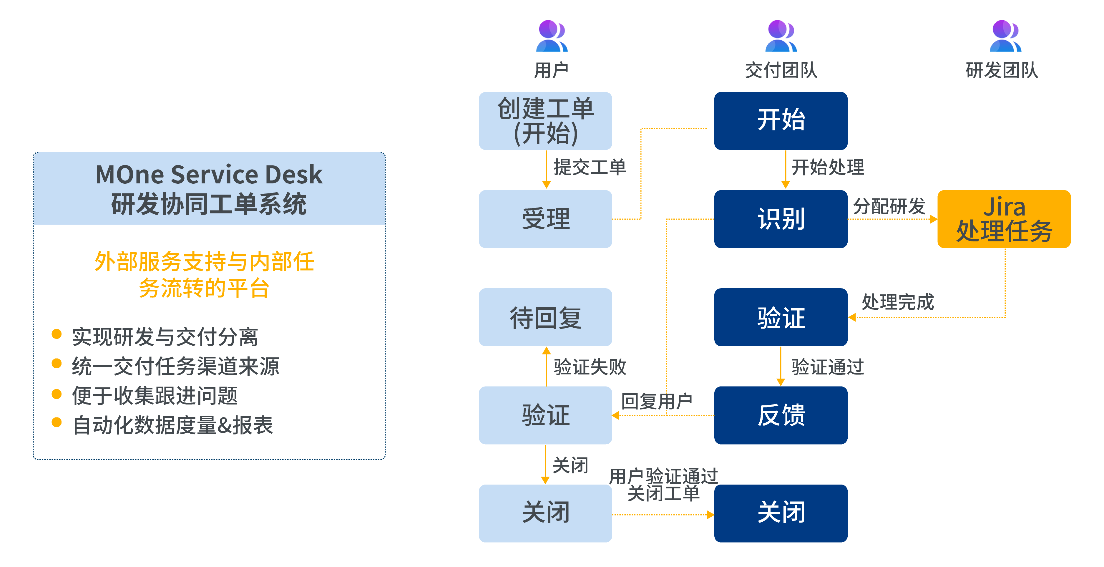 MOne Service Desk 研發(fā)協(xié)同工單系統(tǒng)為不同的使用者提供了對應(yīng)的流程規(guī)范: