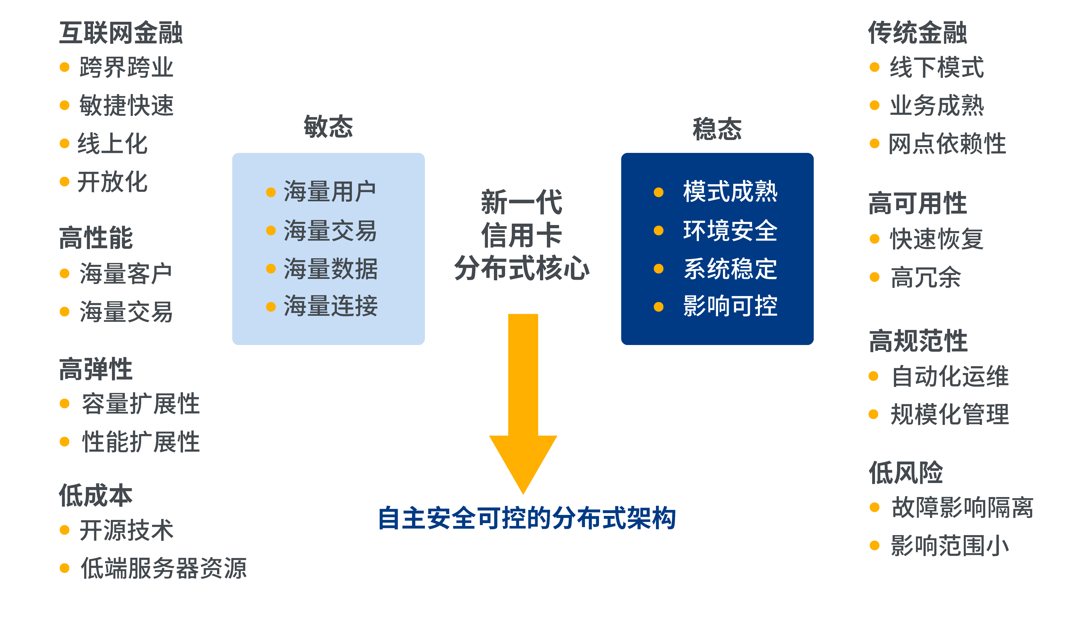 經過二十余年的探索嘗試,在龐大人口所形成的旺盛需求的激發下,我國信用卡領域已經出現了多輪顛覆性的技術和業務創新,原本先進成熟的“進口”系統已無法適應不斷演進的市場需要。
