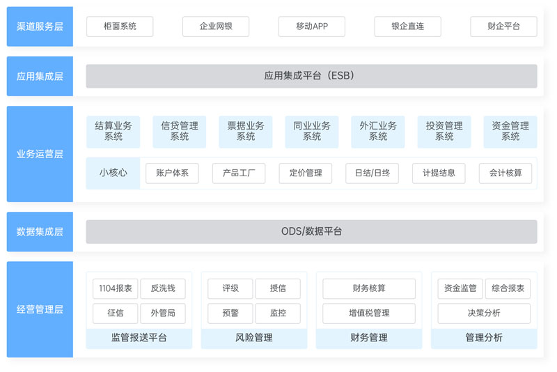 基于商業(yè)銀行核心架構(gòu)體系,采用模型化、組件化、參數(shù)化設(shè)計思想,通過微服務(wù)、分布式、云計算等新技術(shù)平臺,提供“以客戶為中心,以產(chǎn)品為驅(qū)動,集全面業(yè)務(wù)管理、網(wǎng)上金融服務(wù)、監(jiān)督?jīng)Q策于一體”的一站式金融解決方案,為財務(wù)公司搭建一體化的金融服務(wù)平臺,并支撐全流程的業(yè)務(wù)管理體系。