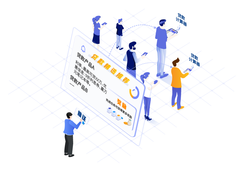 c端用戶通過手機銀行APP或網(wǎng)上銀行做貸款計算器的時候,系統(tǒng)可秒級推送貸款類產(chǎn)品,如完成任務(wù),則會立即獲得相應(yīng)的獎勵。