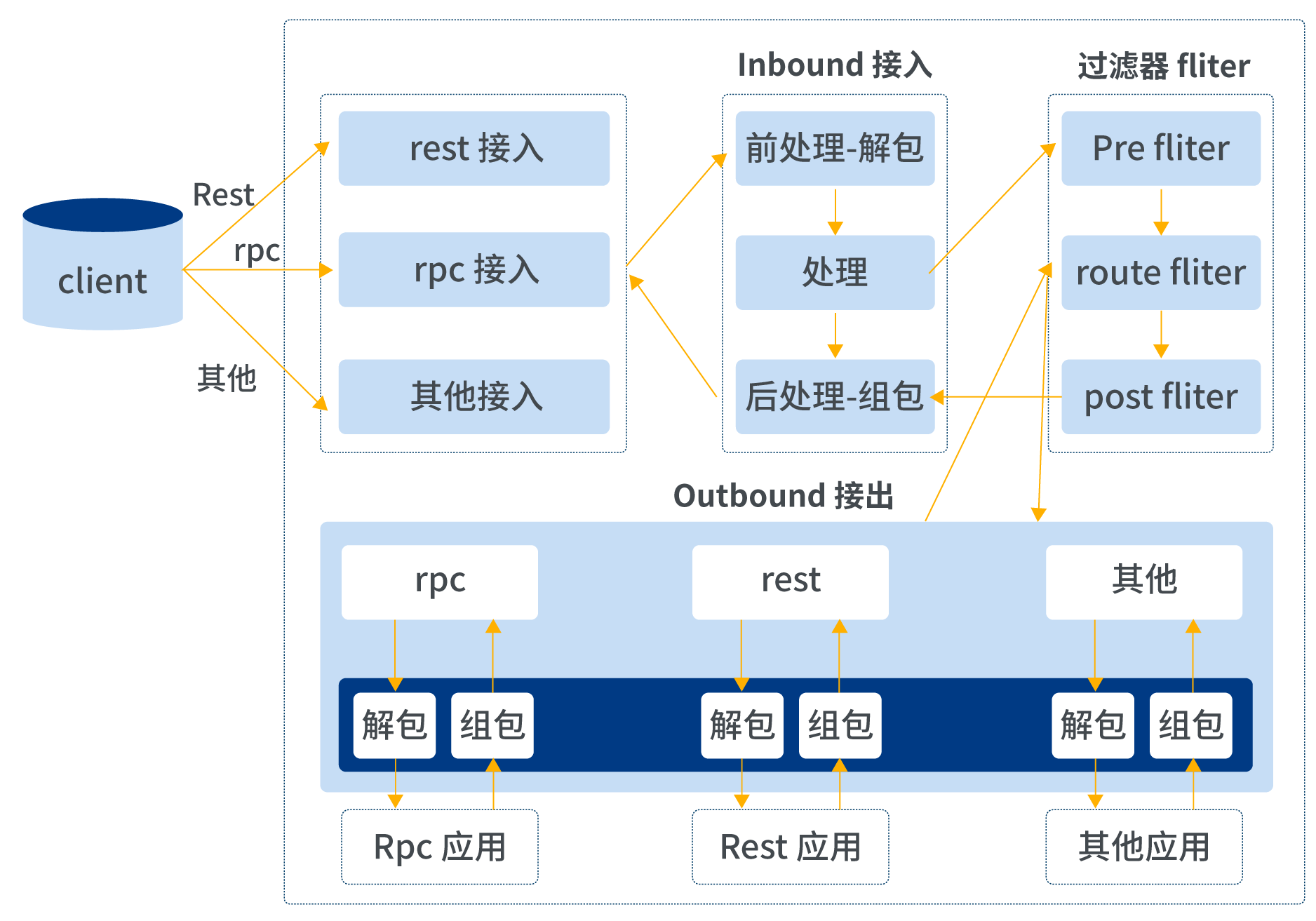 除Filter擴展是在過濾器中進行擴展,其余擴展均是針對inbound和outbound進行擴展。